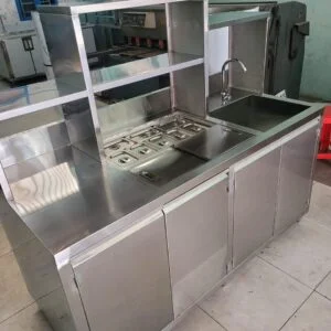 Việc chúng ta sử dụng chất liệu inox sus304 sẽ giúp dễ dàng hơn trong việc lau chùi nhằm đảm bảo yếu tố vệ sinh an toàn thực phẩm cho thực khách.