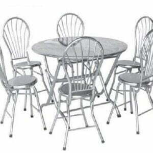 Bộ bàn inox 6 ghế tròn là loại sản phẩm thông thường dành cho phân khúc khách hàng tầm trung. Với kích thước mặt bàn 1,2m, sản phẩm này có thể phục vụ được cho 6 – 10 người cùng một lúc. Bên cạnh đó, do hướng đến nhu cầu sử dụng của các gia đình với quy mô vừa và nhỏ từ 6 người trở xuống, những quán ăn, nhà hàng lớn, cao cấp,… sản phẩm chỉ được thiết kế với 6 ghế dựa có lưng, đem lại sự sang trọng, quý phái cho không gian bày biện. Bên cạnh đó, độ cao chênh lệch giữa bàn và ghế cũng được thiết kế, tính toán rất kỹ lưỡng giúp người sử dụng có thể thoải mái ăn uống, làm việc, học tập với sản phẩm này. Chiều cao lưng ghế 0,5m cho phép người ngồi tựa lưng thoải mái sau thời gian dài tập trung. Bên cạnh đó, cả bàn và ghế đều có khả năng gấp gọn, giúp người dùng dễ dàng vận chuyển đồng thời tiết kiệm diện tích không gian cất chứa. Ngoài ra, bộ khung chịu lực của bàn được thiết kế với 4 chân bằng inox có đường kính 32mm, dày 0,8mm cho phép chịu được trọng lượng lên tới 180 kilôgram (kg). Trong khi đó sản phẩm ghế lại có 4 chân inox đường kính 25mm, dày 0,8mm cho phép chịu được người ngồi có trọng lượng lên tới 140kg.
